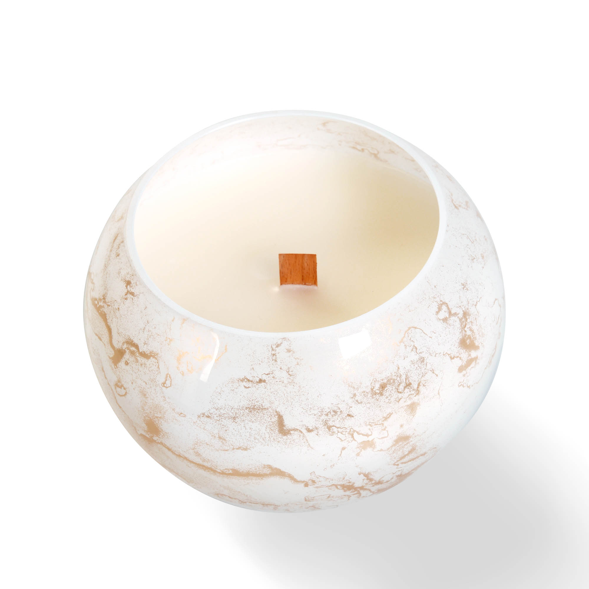 Świeca francuska marki VanderGroff – VG Świeca Francuska/White została wyprodukowana z najwyższej jakości szkła i zdobiona ręcznie. Wykonana w delikatne bieli ze złotym marmurem, który wnosi do wnętrza blask i elegancję. Jej delikatny wygląd doskonale wpasowuje się w różne style wnętrzarskie, od skandynawskiego po boho. Idealny do wnętrz i przestrzeni zewnętrznych, tworząc ciepły, kojący klimat. Perfekcyjny wybór na wieczorne chwile relaksu lub wyjątkowe okazje w gronie bliskich. Świeca zawiera 500 g wysokiej jakości wosku zapachowego o wyjątkowym aromacie perfum SummerShine by VanderGroff. Ten luksusowy zapach wprowadzi do Twojego wnętrza niesamowitą aurę pełną świeżości i elegancji, idealną do stworzenia przytulnej i relaksującej atmosfery.