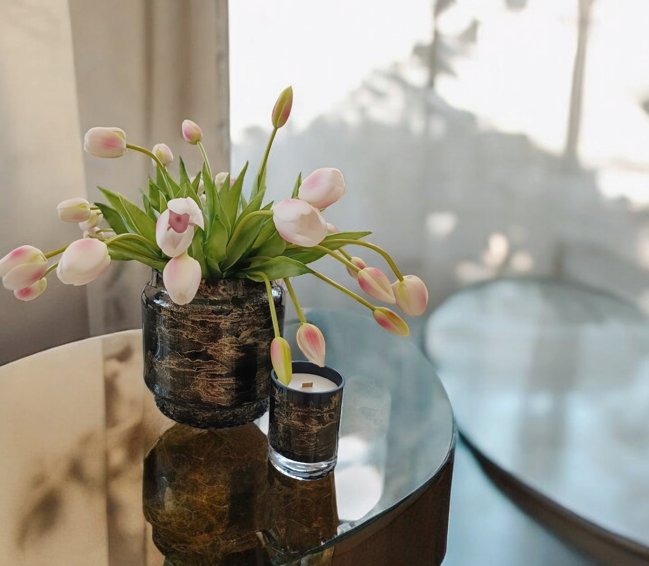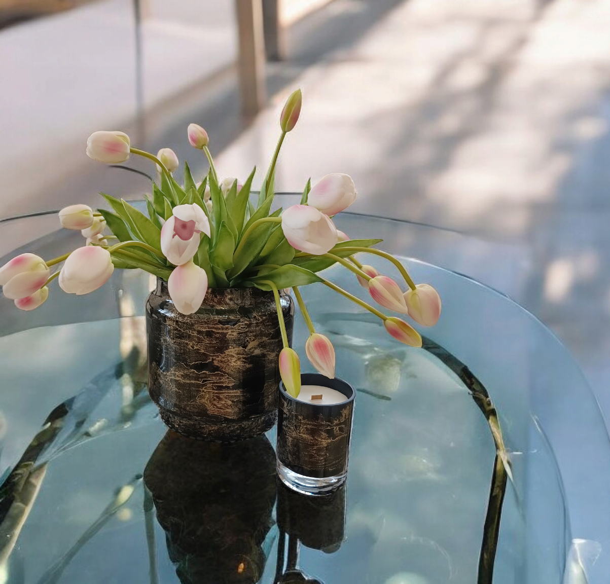 🌑 Złoty marmurowy wzór – subtelne, złote żyłki marmuru, które wiją się po całej powierzchni wazonu, nadając mu wyjątkowego charakteru.