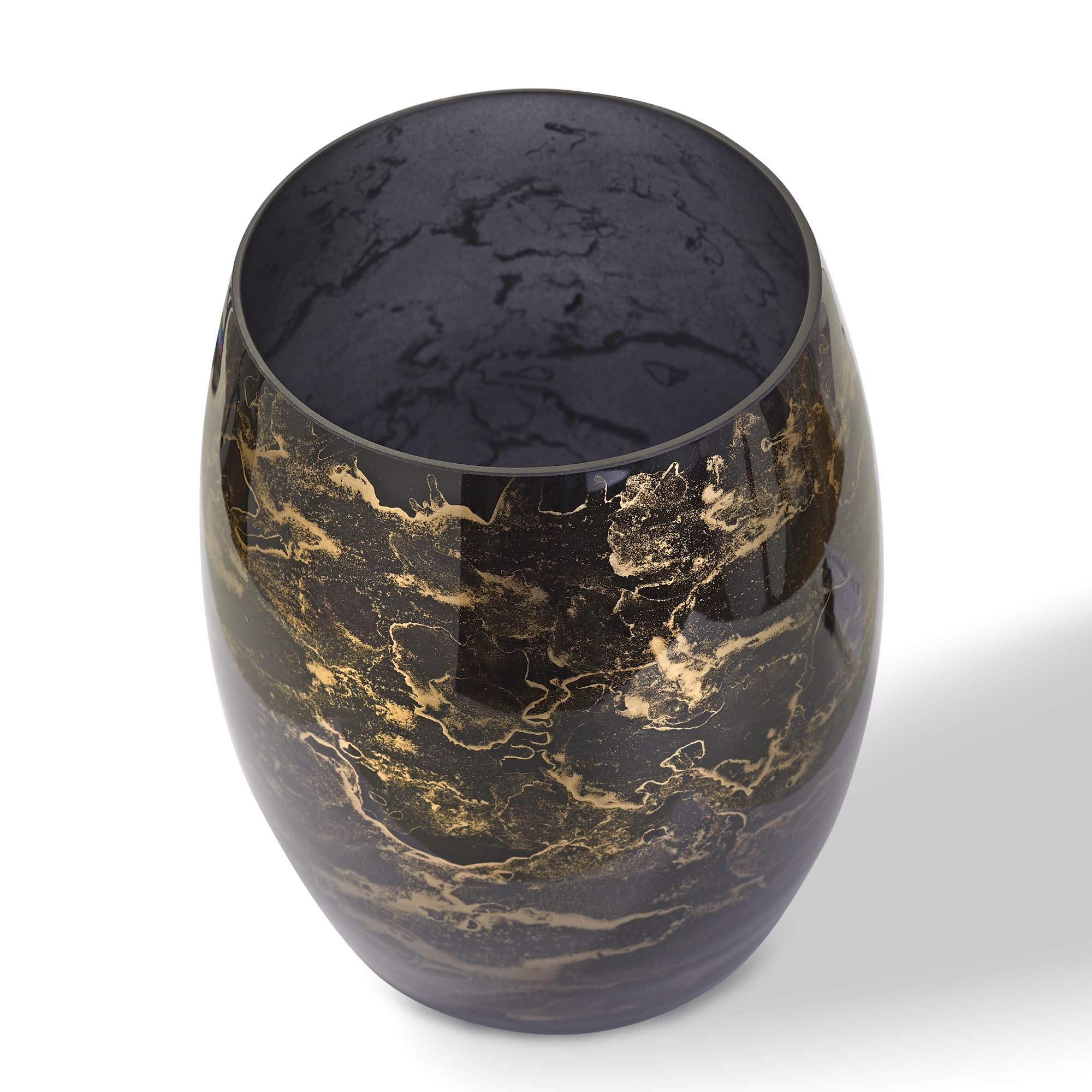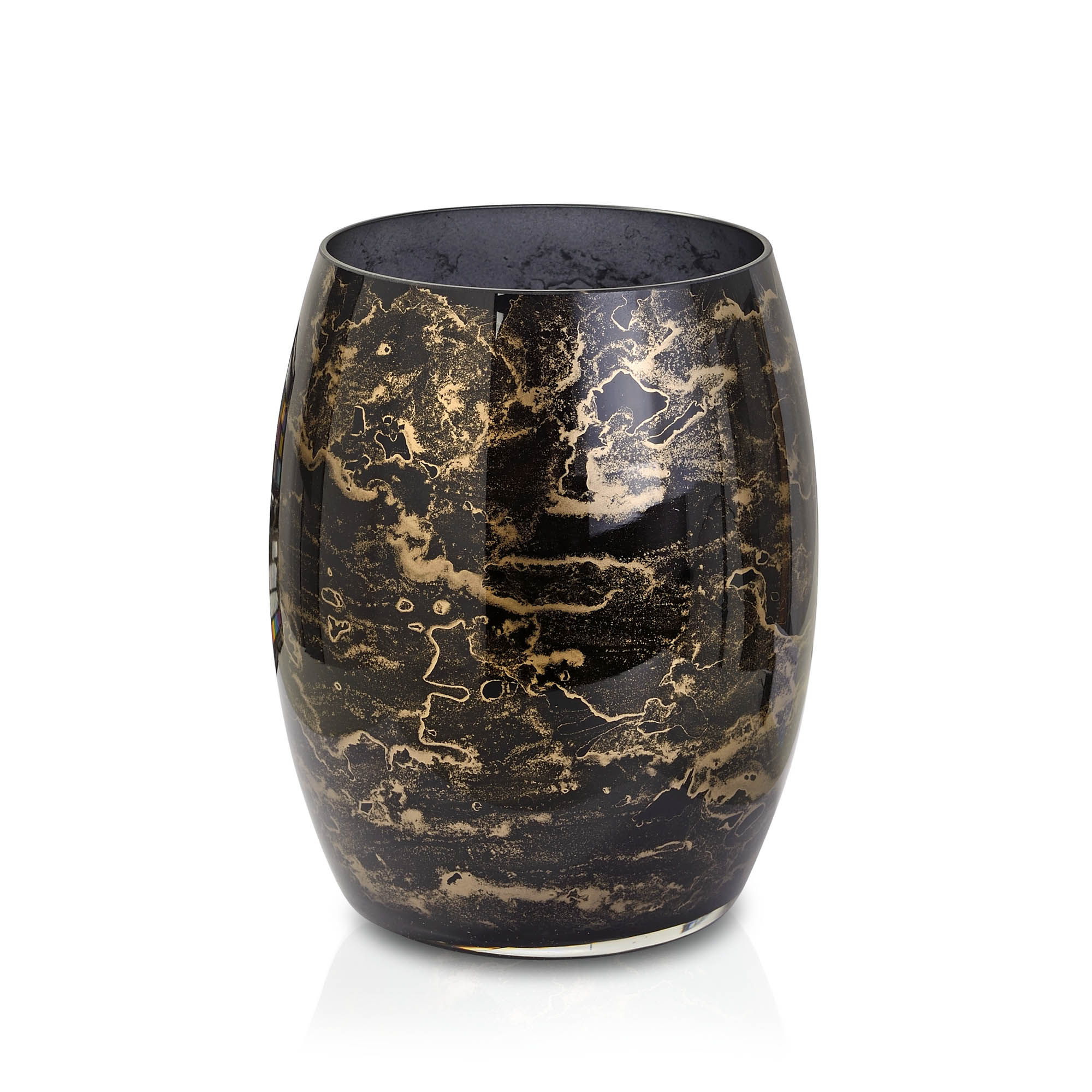 Szklany wazon marki VanderGroff – VG20x16/Black to wyjątkowa dekoracja, która łączy nowoczesny design z klasycznym luksusem. Wykonany z wysokiej jakości szkła, nadając wnętrzom elegancki i stylowy wygląd. Jego głęboki czarny kolor w połączeniu z subtelnym, złotym marmurowym wzorem tworzy niezwykle efektowną kompozycję, która przyciąga wzrok i stanowi elegancki akcent w każdym pomieszczeniu.