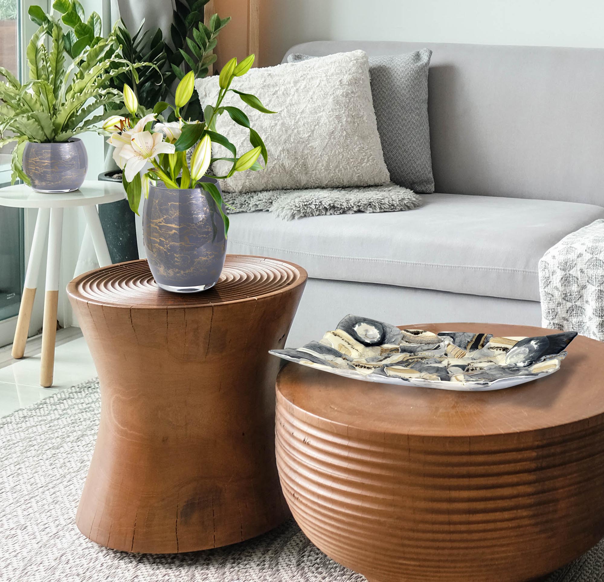Szklany wazon marki VanderGroff – VG20x16/Gray został wykonany z wysokiej jakości szkła i dekorowany ręcznie z niezwykłą precyzją. Wyjątkowy szary odcień ze złotym marmurem nadaje mu luksusu i elegancji. Ten wazon stanowi dodatek jak do nowoczesnych tak i do tradycyjnych wnętrz.