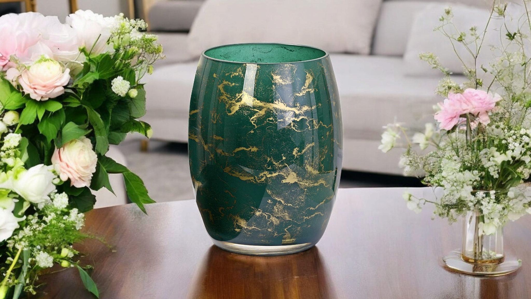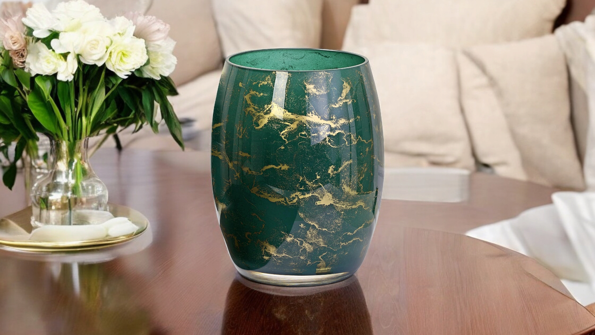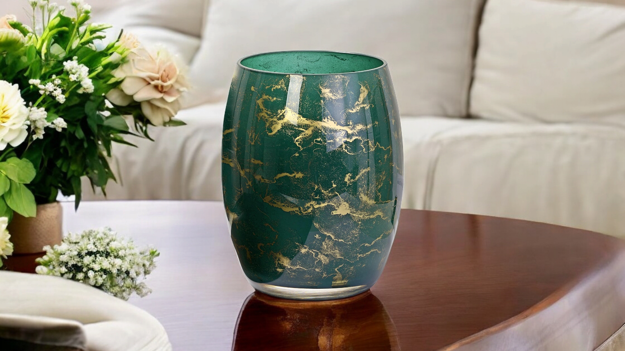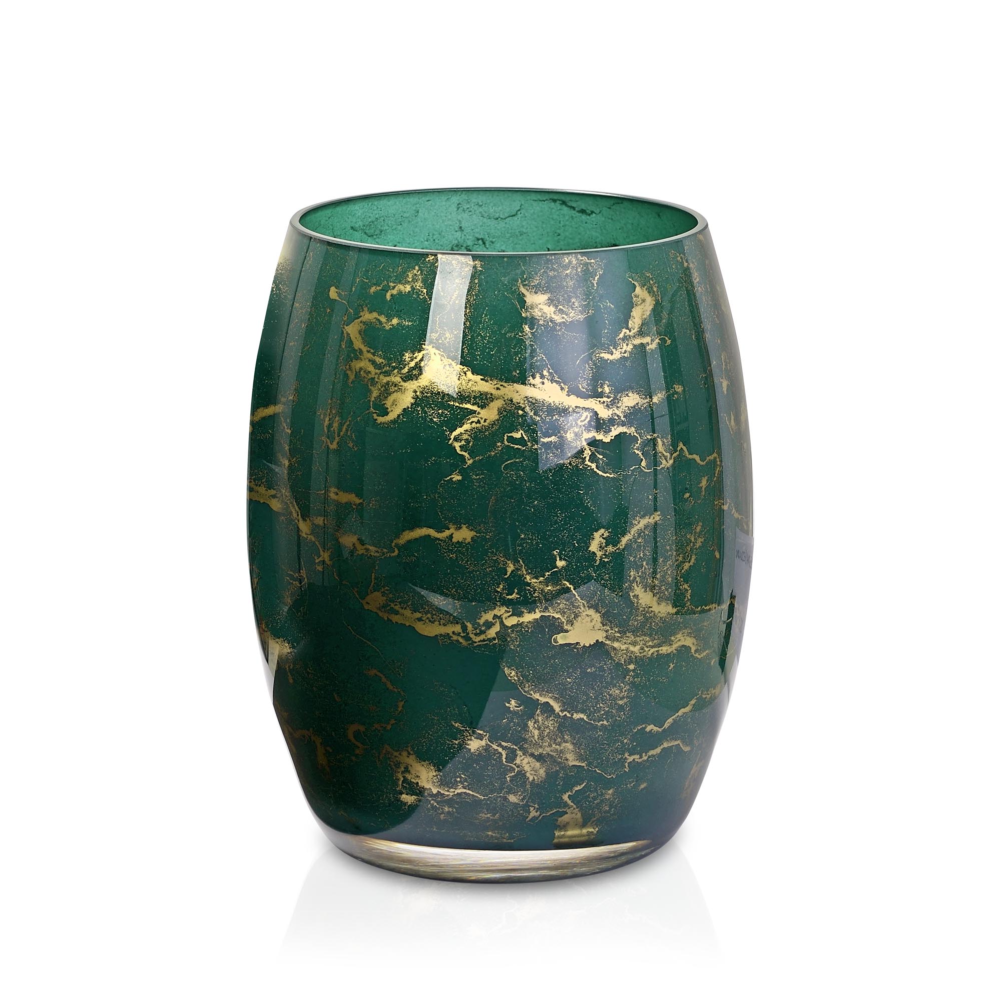 Szklany wazon marki VanderGroff – VG20x16/Green został wykonany z wysokiej jakości szkła i dekorowany ręcznie z niezwykłą precyzją. Wyjątkowy kolor butelkowej zieleni z dodatkiem złotego marmuru nadaje mu luksusu i elegancji. Ten wazon stanowi dodatek jak do nowoczesnych tak i do tradycyjnych wnętrz.