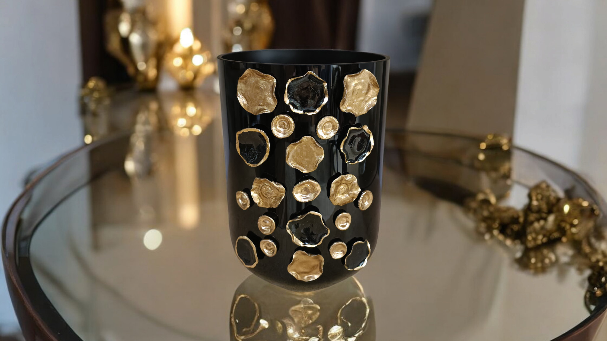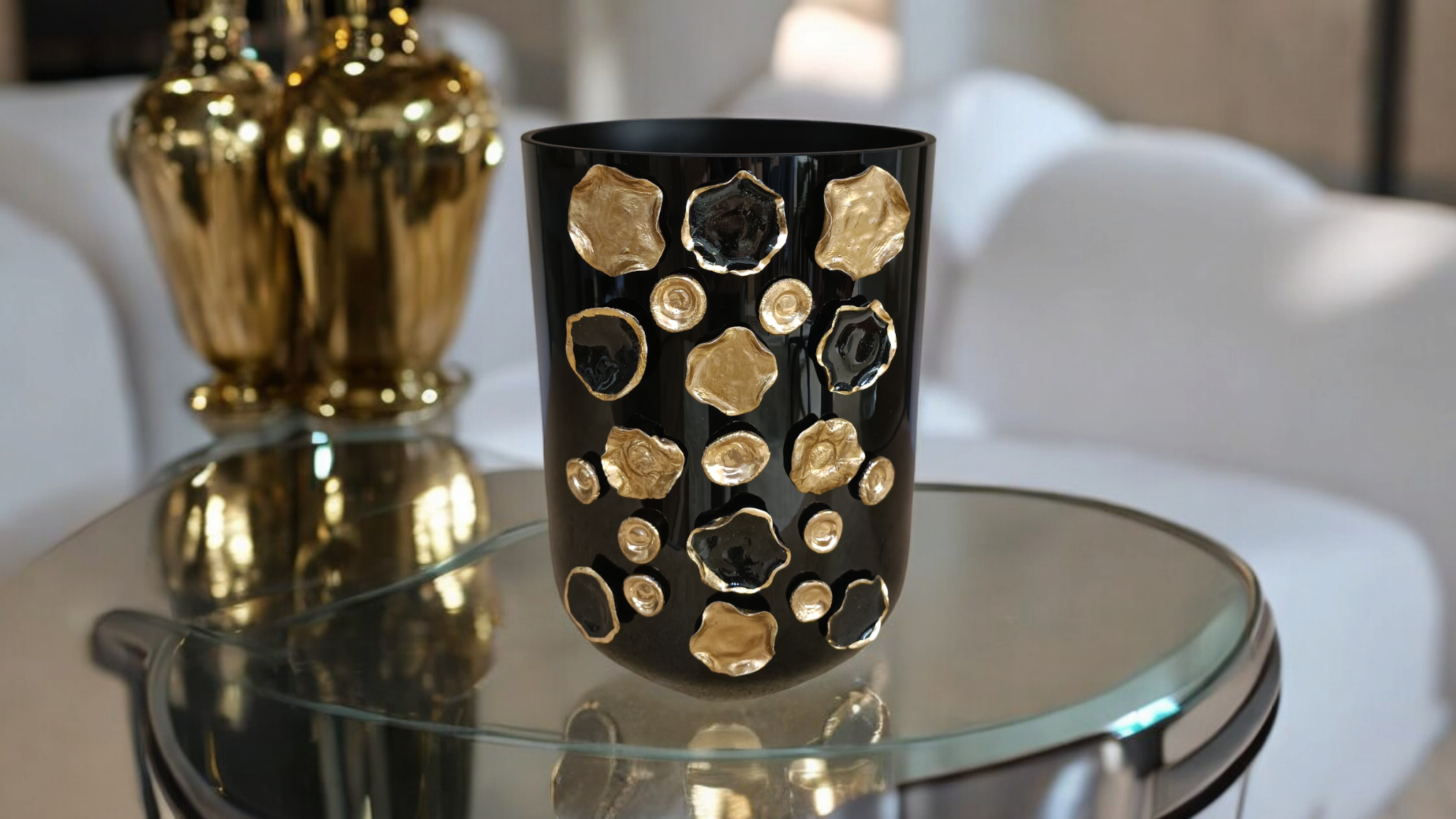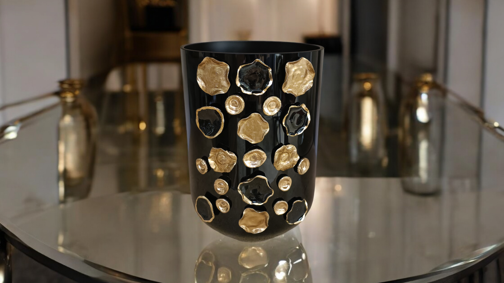 Szklany wazon marki VanderGroff – VG24B/DBG z serii Exclusive Black to symbol elegancji i nowoczesnego stylu. Jego wyjatkowy design, wzbogacony o eleganckie czarno-złote dodatki, nadaje wnętrzu unikalny charakter oraz luksusowy akcent. Idealny wybór dla tych, którzy cenią wysoką jakość i estetykę w swoim domu czy biurze.