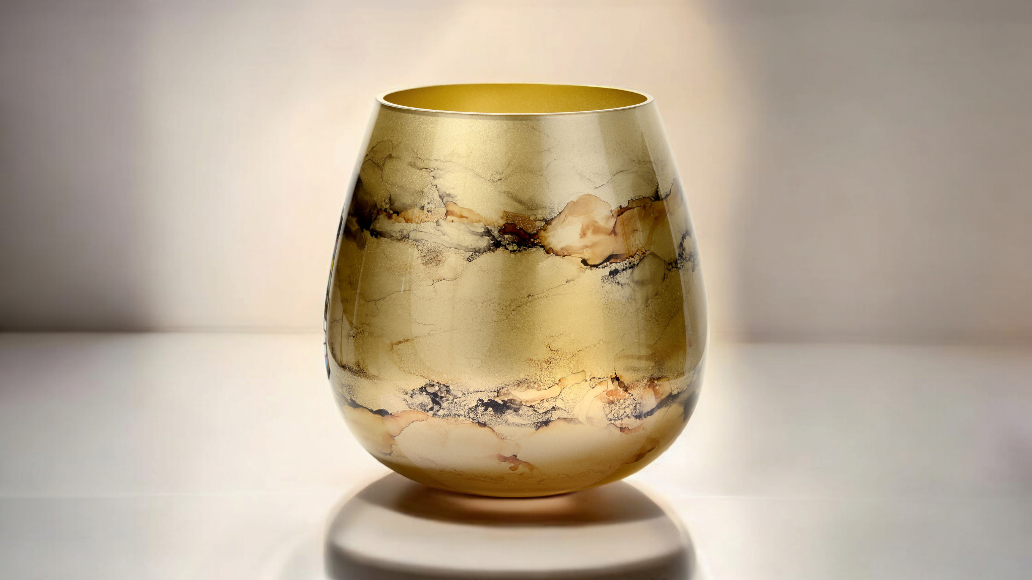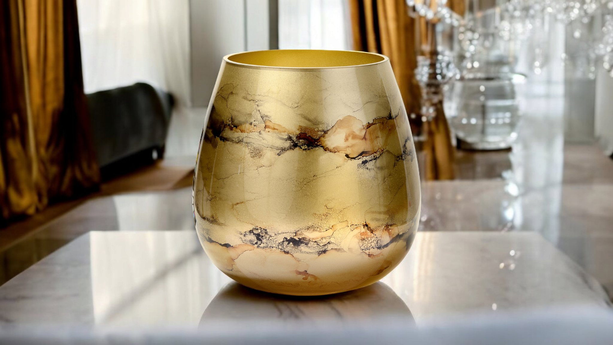 Szklany wazon marki VanderGroff – VG25/GOLD został wykonany z wysokiej jakości szkła i dekorowany ręcznie z niezwykłą precyzją. Złoty kolor w połączeniu z eleganckimi, ciemnymi marmurowymi wzorami nadają mu luksusowy charakter i elegancję. Idealnie sprawdzi się jako stylowy dodatek do wnętrz, wnosząc nutę klasy i prestiżu zarówno w nowoczesnych, jak i tradycyjnych aranżacjach.