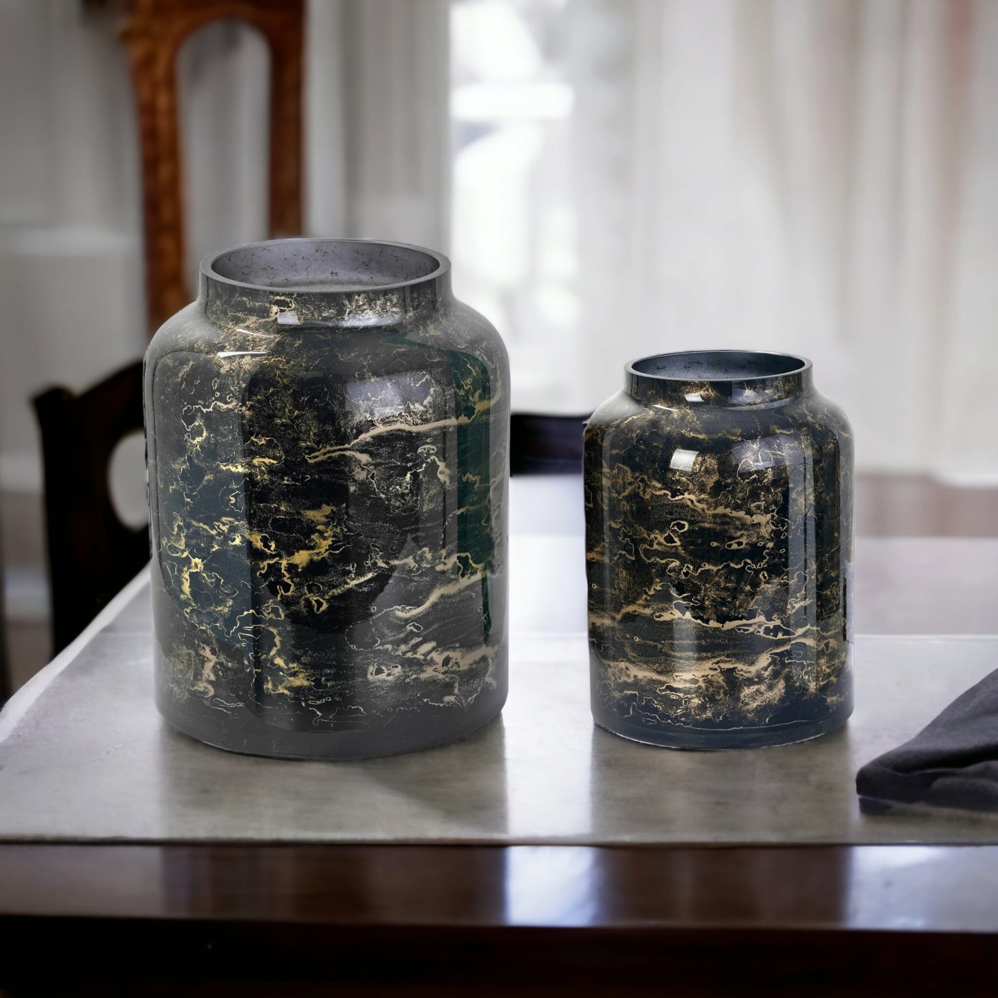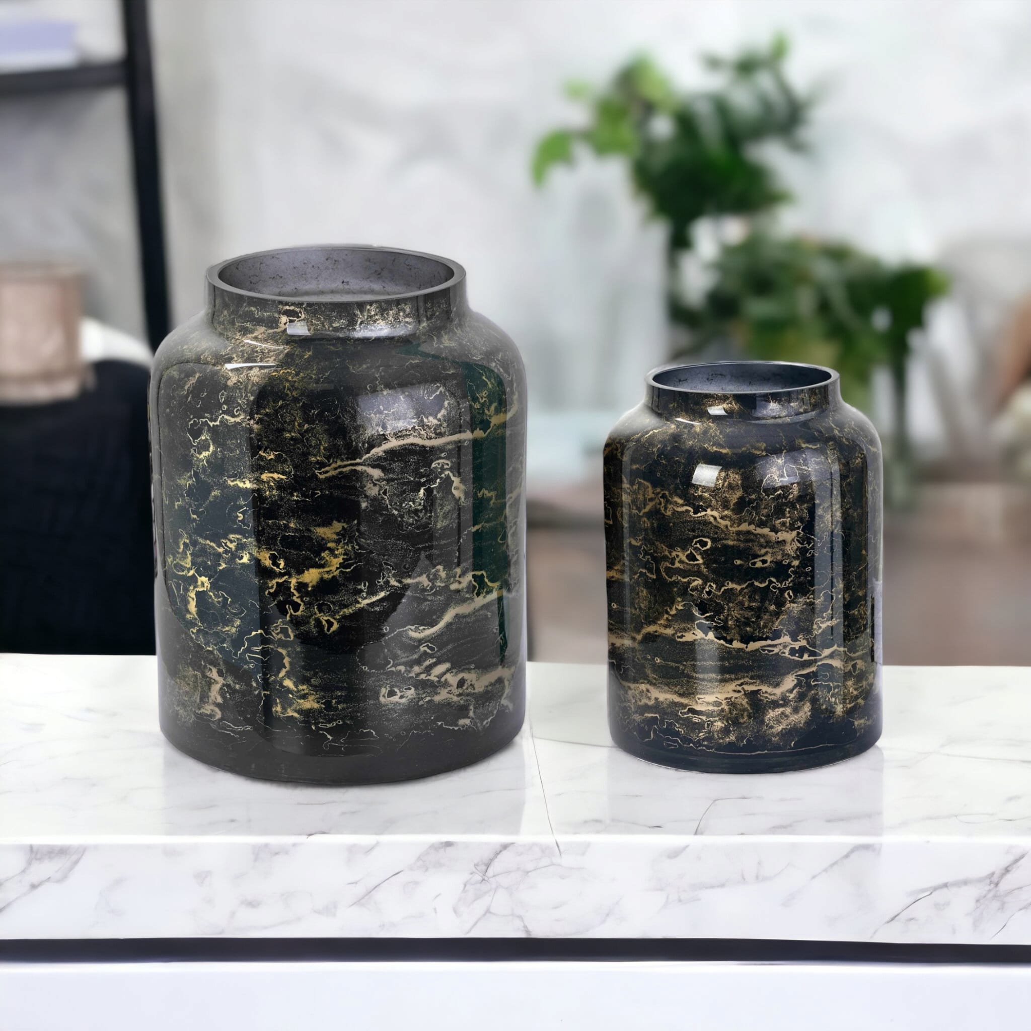 🌑 Złoty marmurowy wzór – subtelne złote żyłki marmuru, które wiją się po całej powierzchni, tworząc luksusowy efekt i nadając wazonowi wyjątkowego charakteru.