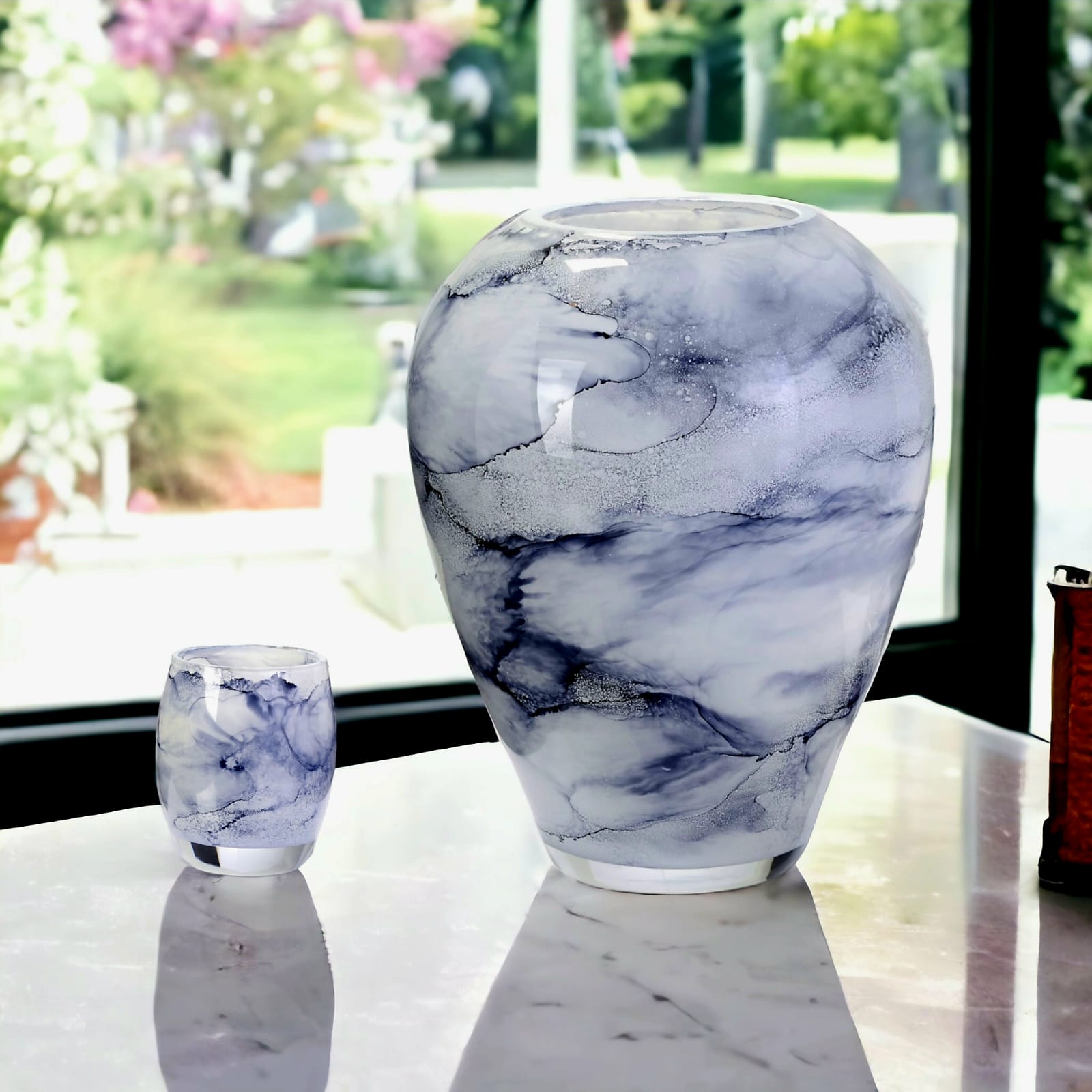 🌿 Stylowy wygląd – marmurkowy efekt w odcieniach bieli i szarości sprawia, że wazon pasuje do różnych stylów wnętrz, od nowoczesnych po klasyczne.