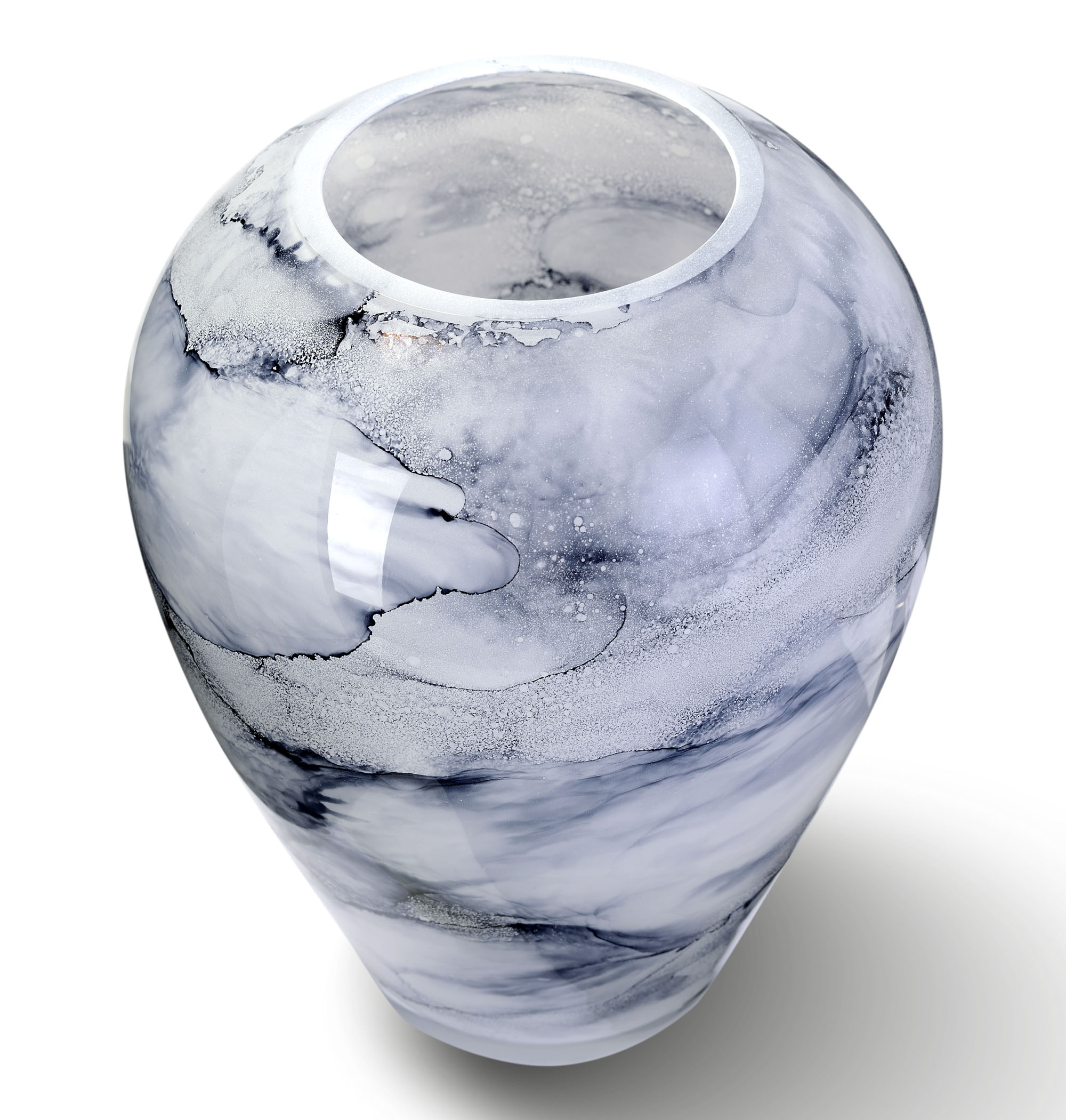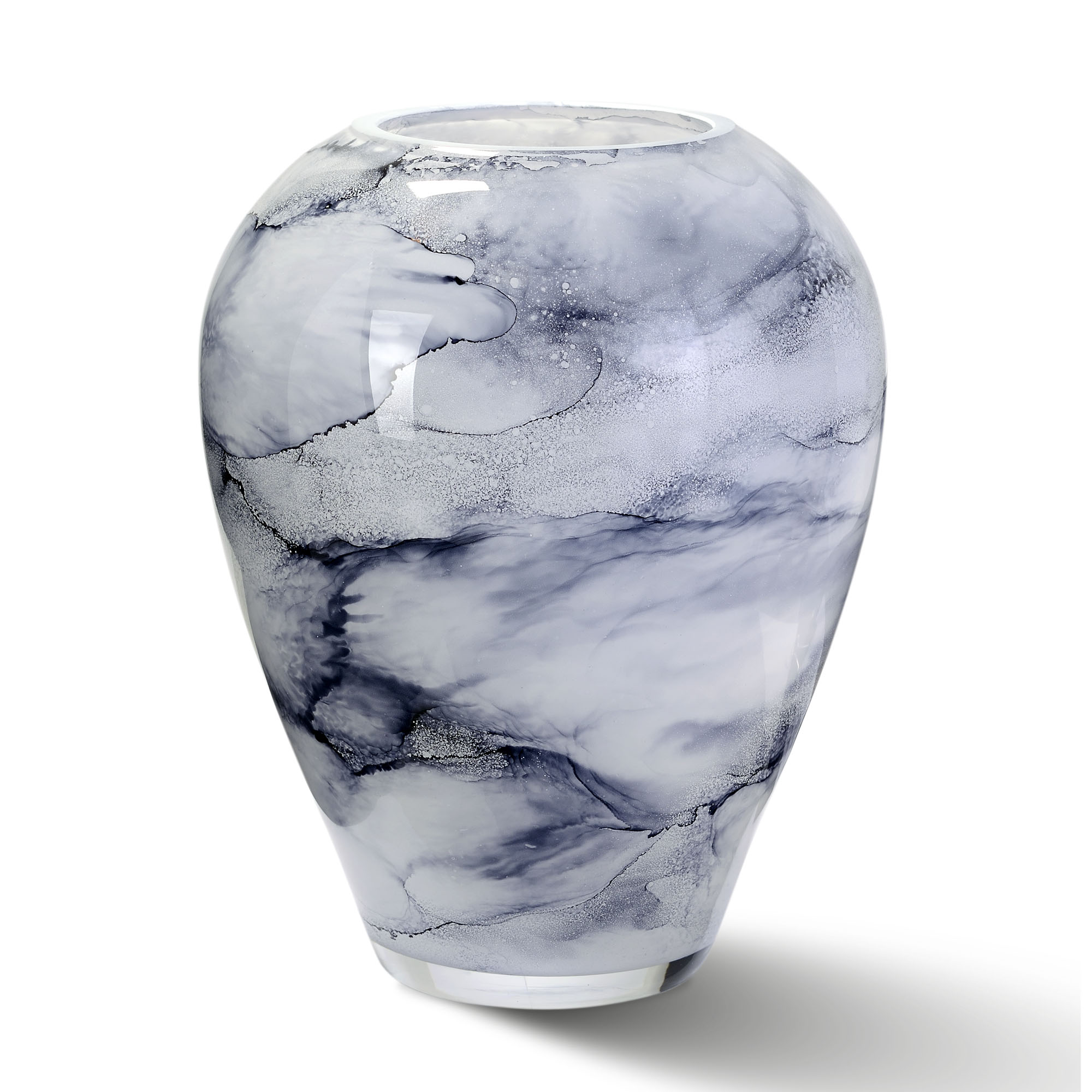 Szklany wazon marki VanderGroff – VG27/ARCTIC to wyjątkowy element dekoracyjny, który zachwyca subtelnym wzornictwem i wysoką jakością wykonania. Jego marmurkowy, biało-szary wzór nawiązuje do arktycznych krajobrazów, wprowadzając do wnętrza atmosferę świeżości i elegancji.