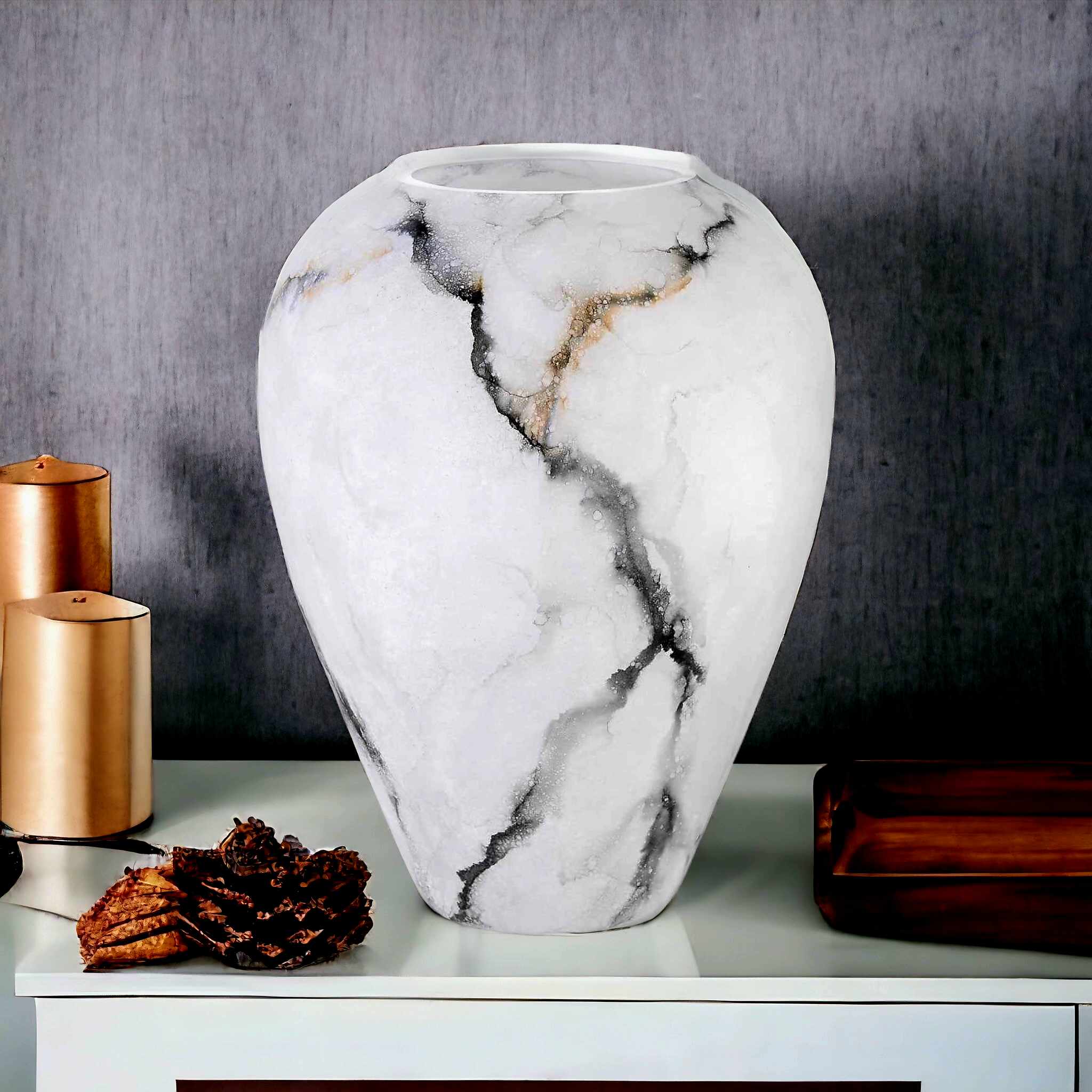 - Wysokość: 27 cm – idealna wysokość, która przyciąga wzrok, ale nie przytłacza przestrzeni.