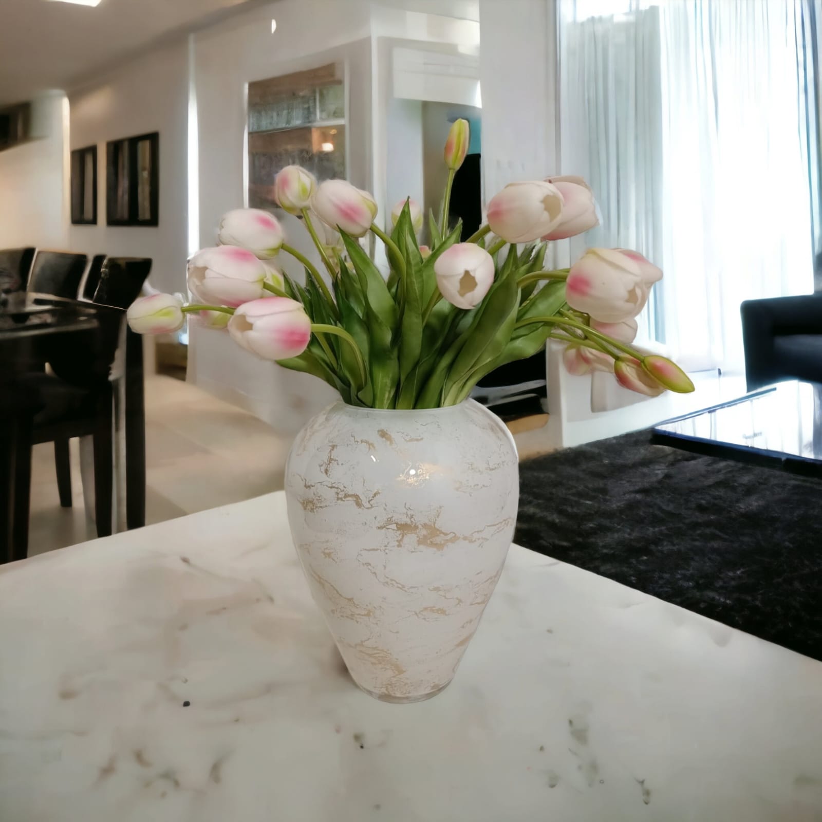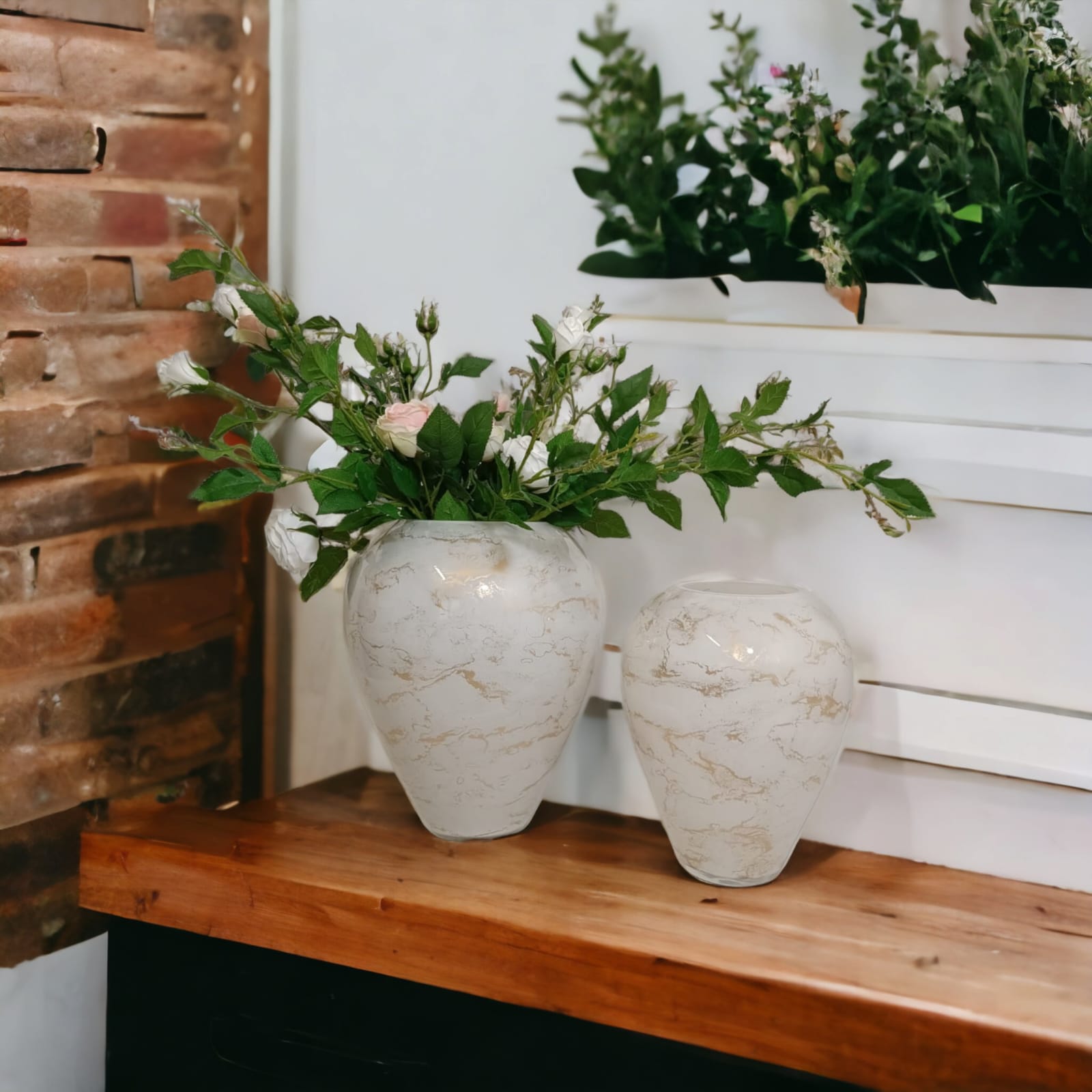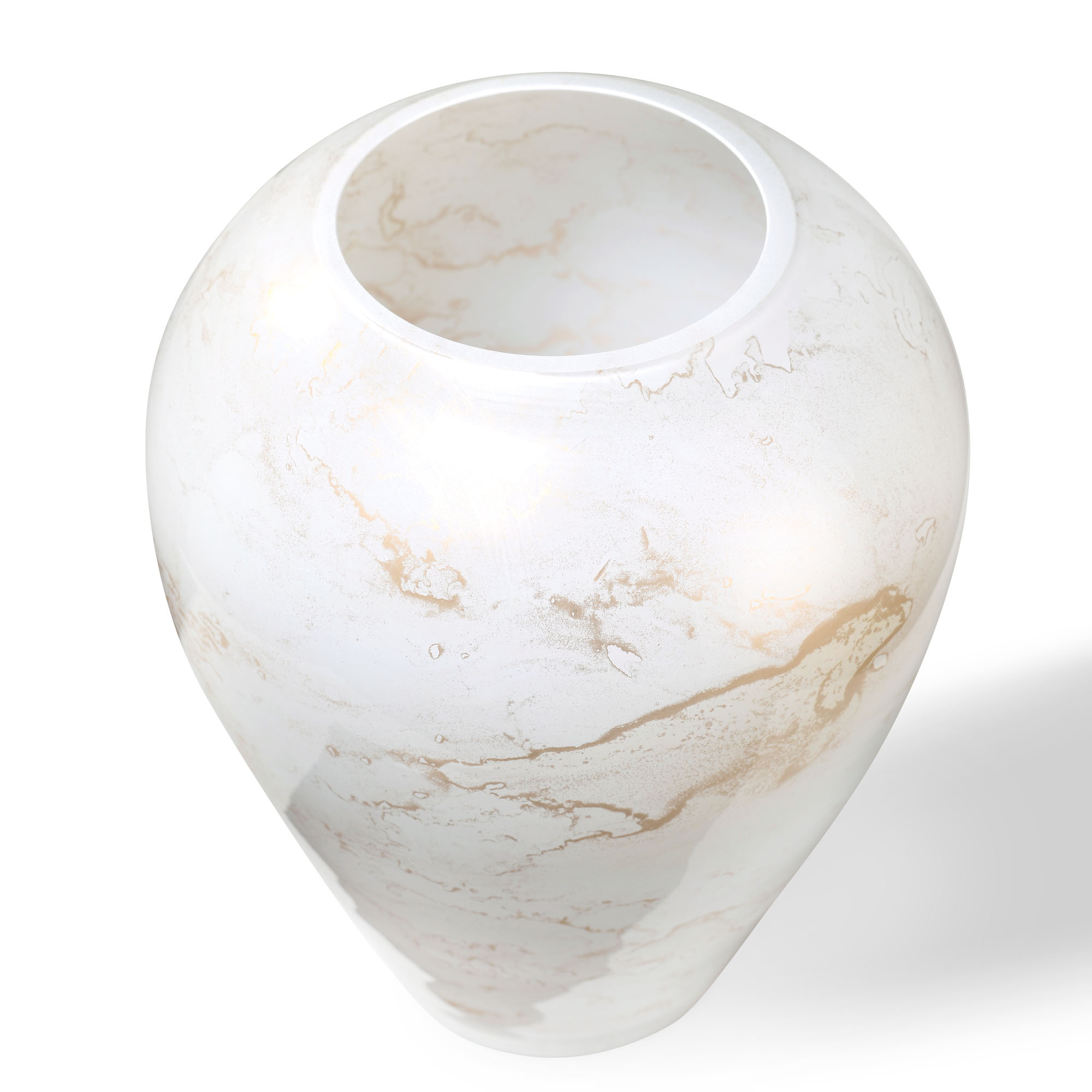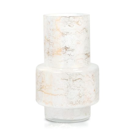 Szklany wazon marki VanderGroff – VG27/White został wykonany z wysokiej jakości szkła i dekorowany ręcznie z niezwykłą precyzją w delikatne bieli ze złotym marmurem, który wnosi do wnętrza blask i elegancję. Jego delikatny wygląd doskonale wpasowuje się w różne style wnętrzarskie, od skandynawskiego po boho. Idealny do wnętrz i przestrzeni zewnętrznych, tworząc ciepły, kojący klimat.