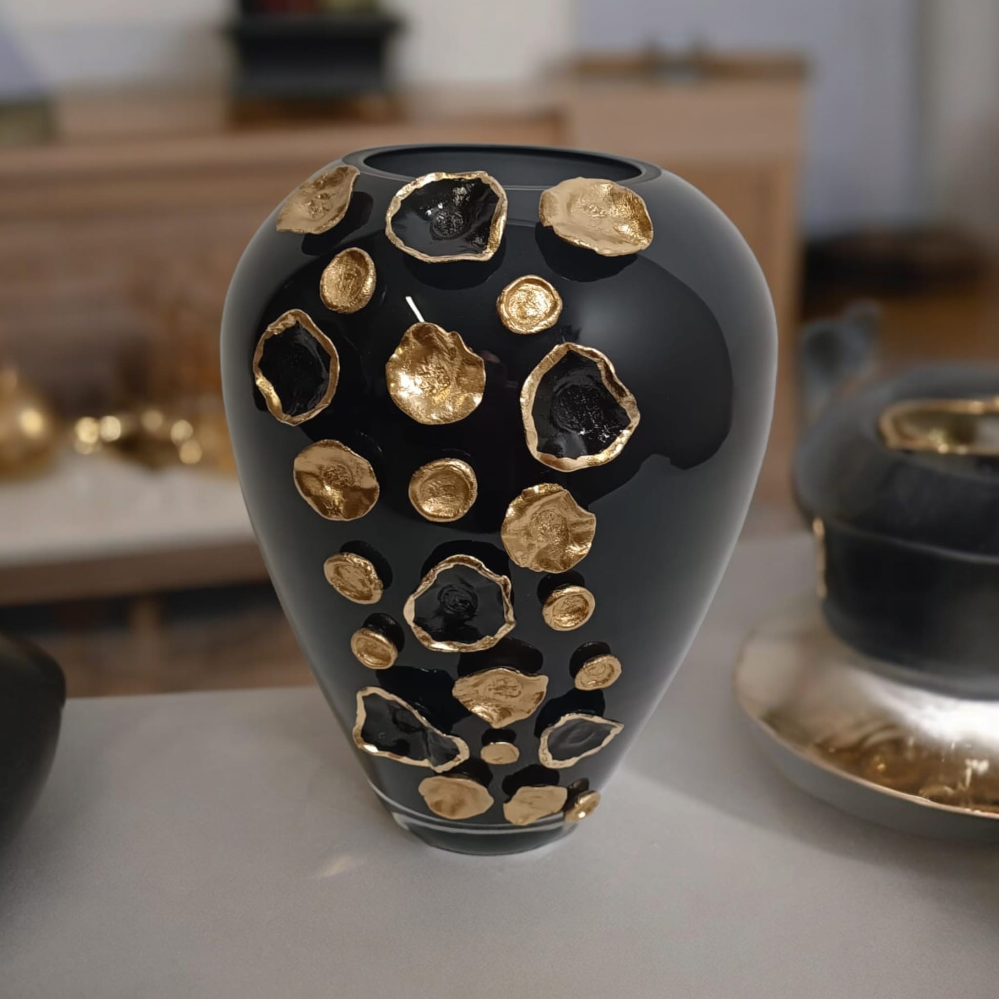 Szklany wazon marki VanderGroff – VG27B/DBG z serii Exclusive Black to symbol elegancji i nowoczesnego stylu. Jego wyjatkowy design, wzbogacony o eleganckie czarno-złote dodatki, nadaje wnętrzu unikalny charakter oraz luksusowy akcent. Idealny wybór dla tych, którzy cenią wysoką jakość i estetykę w swoim domu czy biurze.