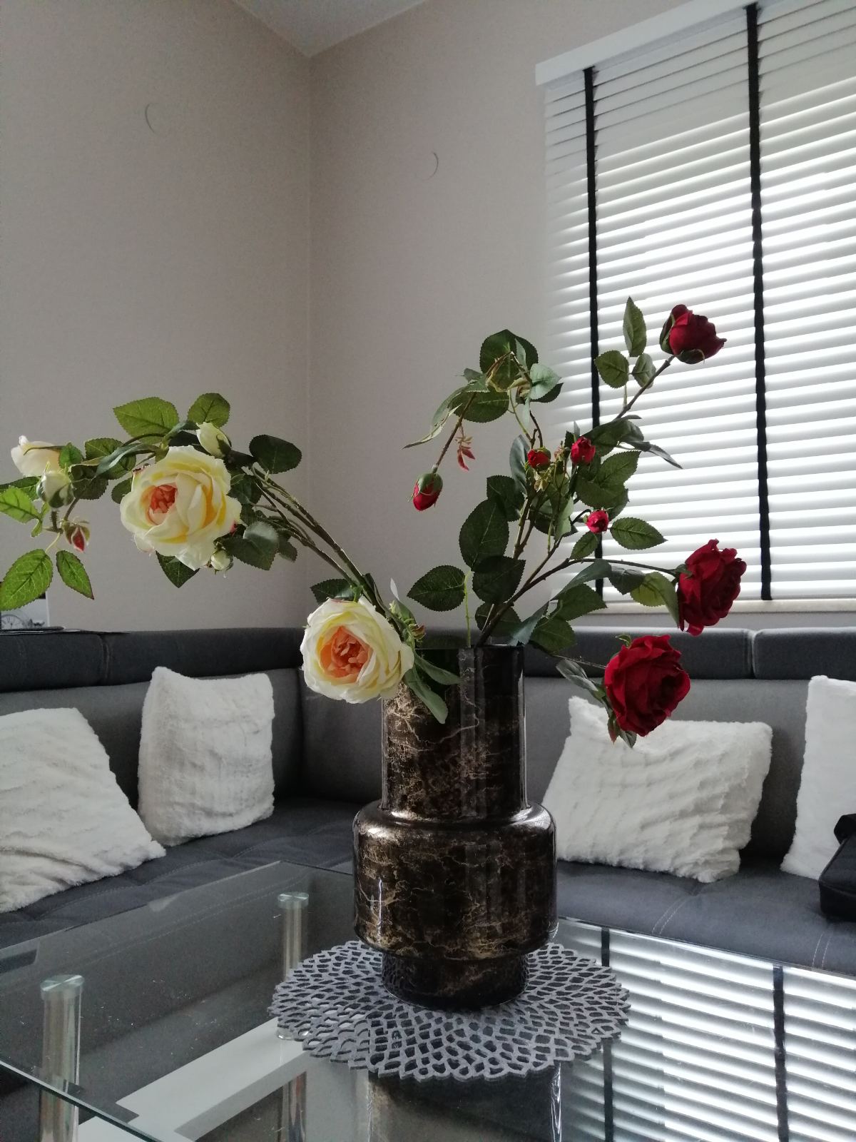 🌑 Głęboka czerń – wazon wyróżnia się intensywnym czarnym kolorem, który stanowi eleganckie tło dla kompozycji kwiatowych.