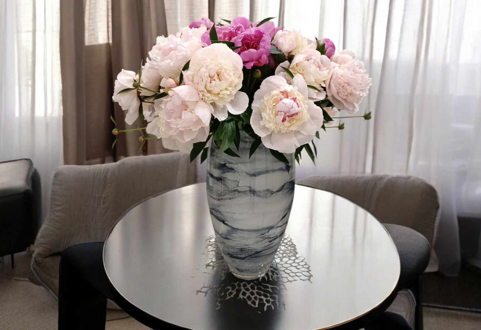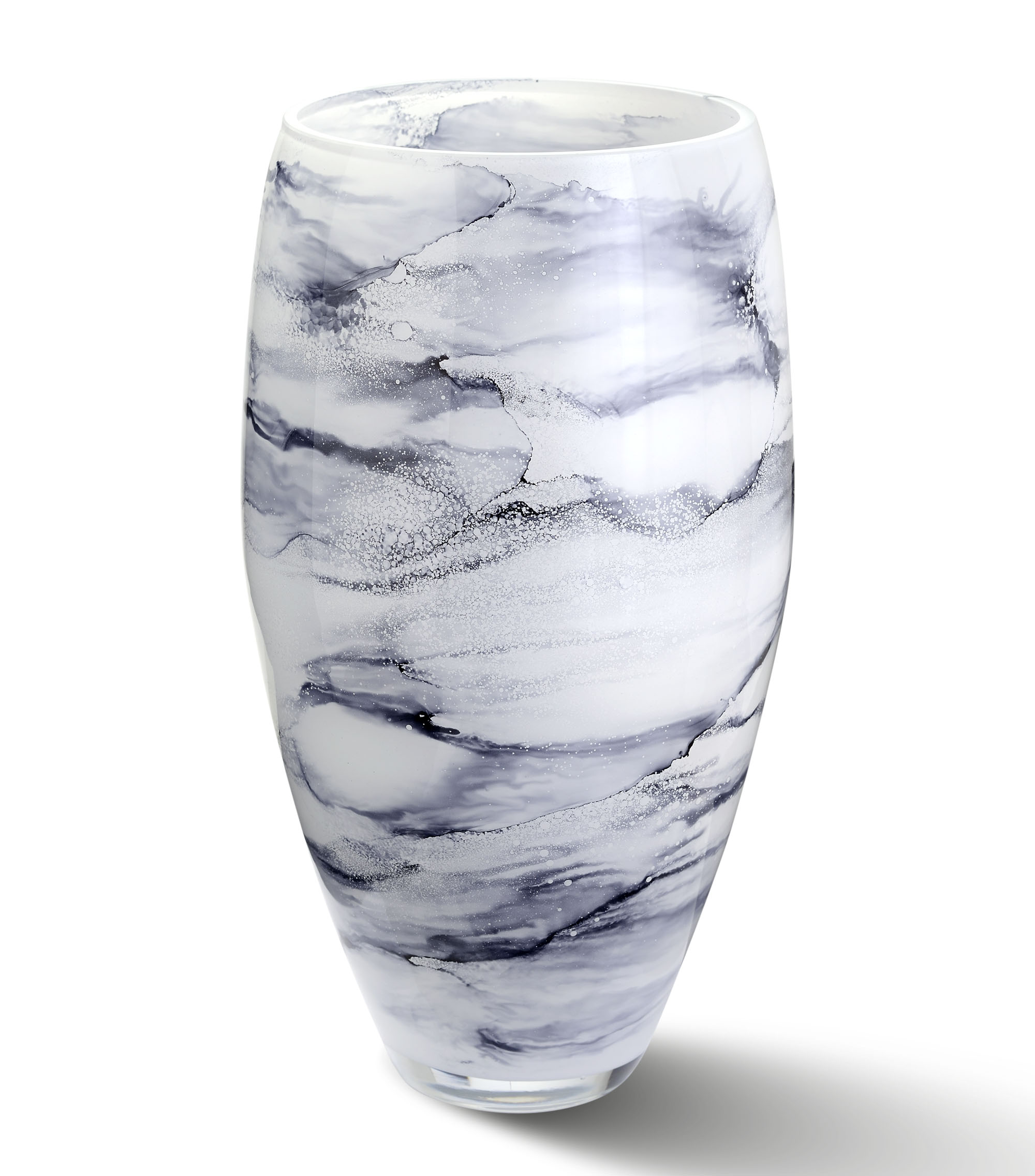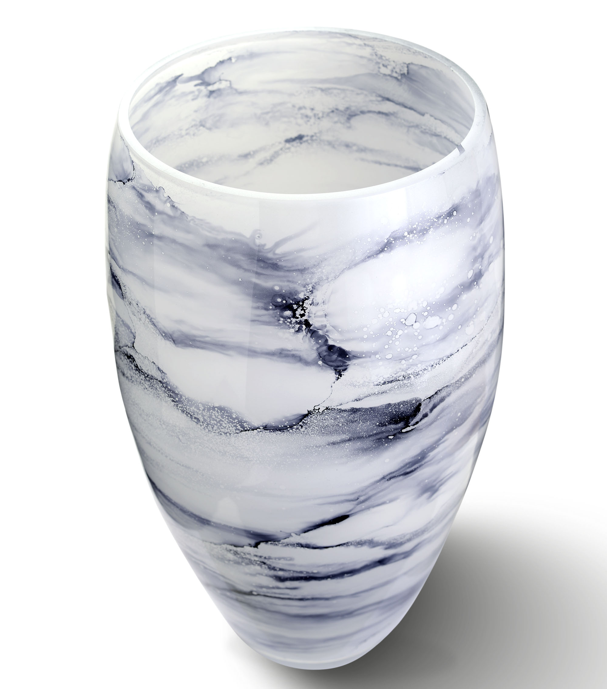 Dodaj swojemu wnętrzu odrobinę luksusu dzięki wyjątkowemu wazonowi marki VanderGroff – VG38/ARCTIC. Jego subtelny, marmurkowy wzór inspirowany zimowymi krajobrazami tworzy atmosferę elegancji i harmonii w każdym pomieszczeniu.