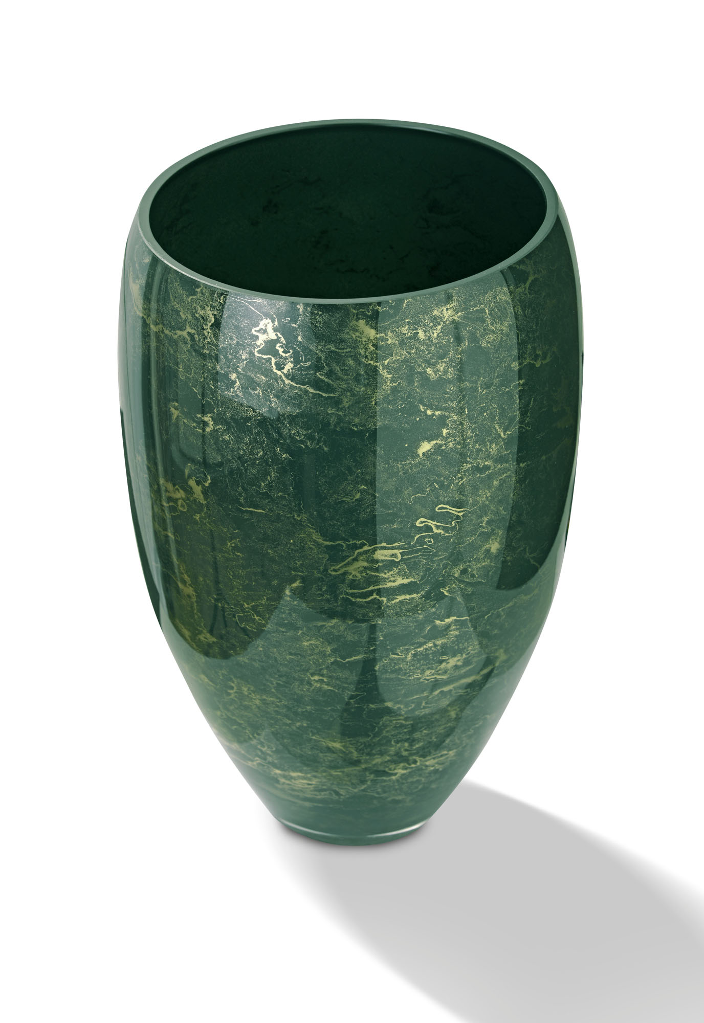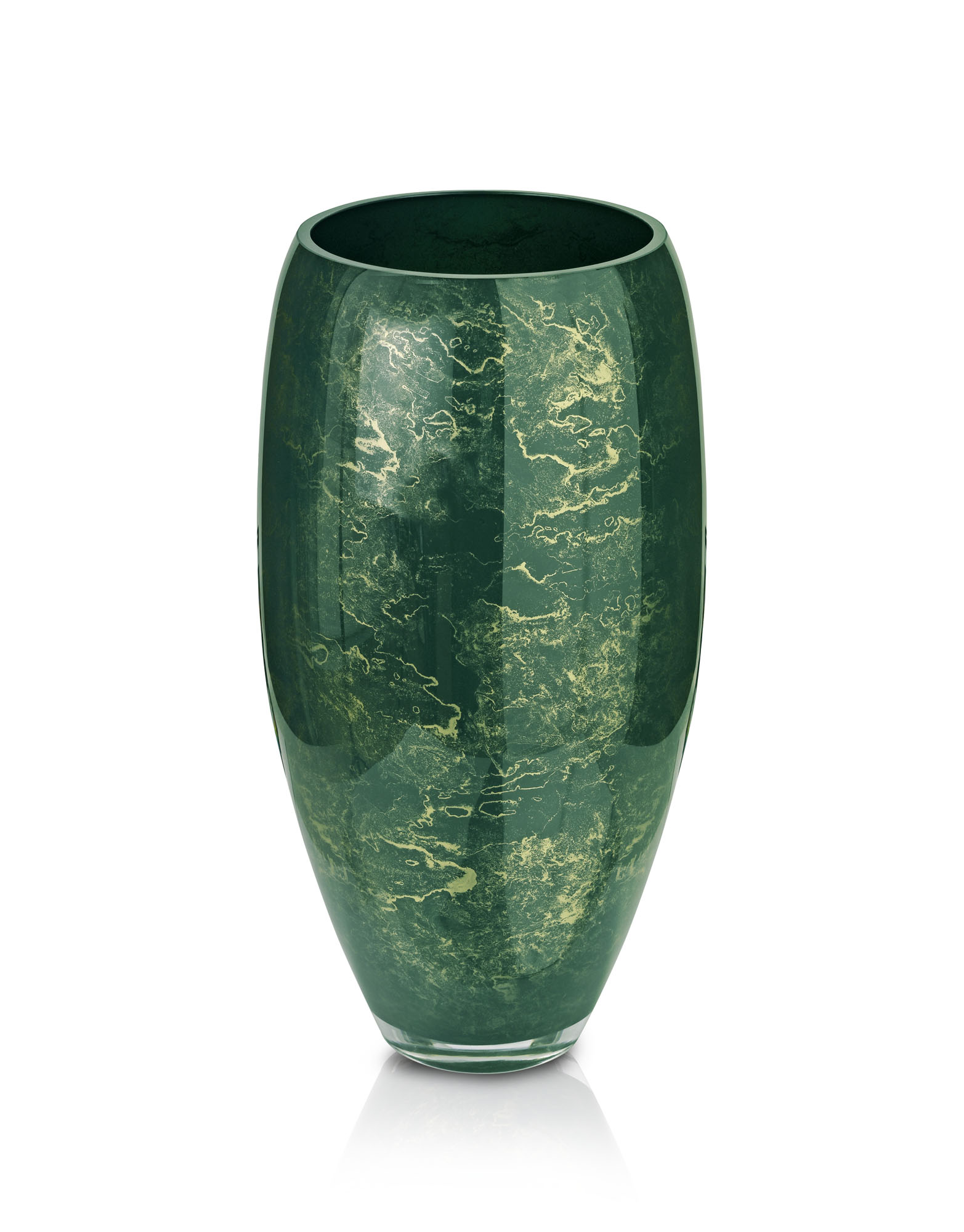 Szklany wazon marki VanderGroff – VG38/Green został wykonany z wysokiej jakości szkła i dekorowany ręcznie z niezwykłą precyzją. Wyjątkowy kolor butelkowej zieleni z dodatkiem złotego marmuru nadaje mu luksusu i elegancji. Ten wazon stanowi dodatek jak do nowoczesnych tak i do tradycyjnych wnętrz.